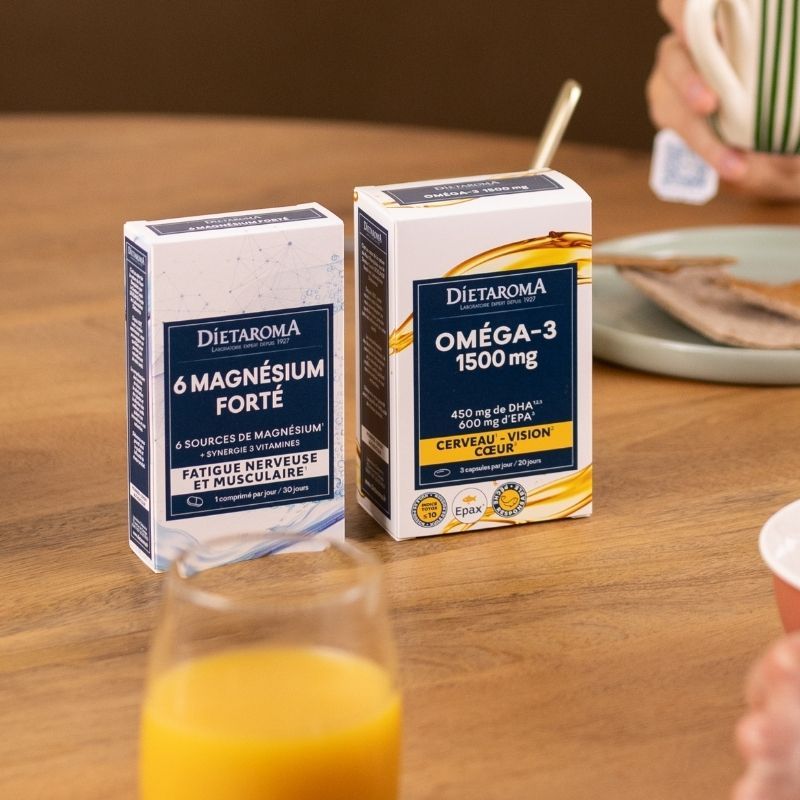- OMÉGA 3 1500 : apporte des acides gras essentiels EPA et DHA qui contribuent au bon fonctionnement du cœur, du cerveau et de la vision.